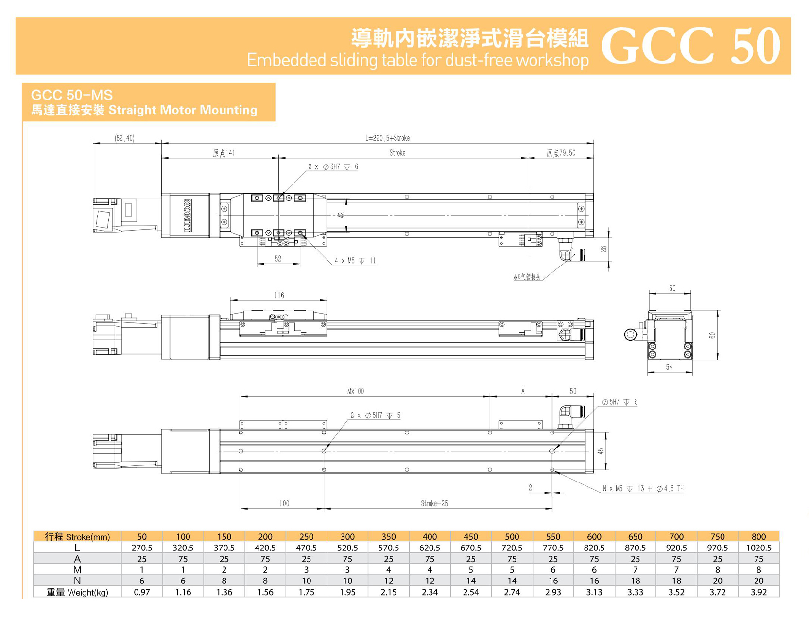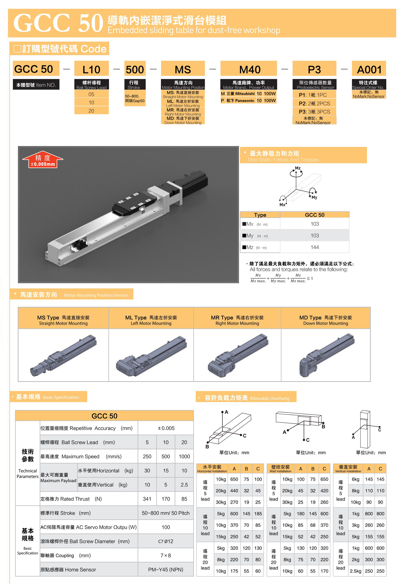 GCC50內(nèi)嵌潔凈式滑臺模組