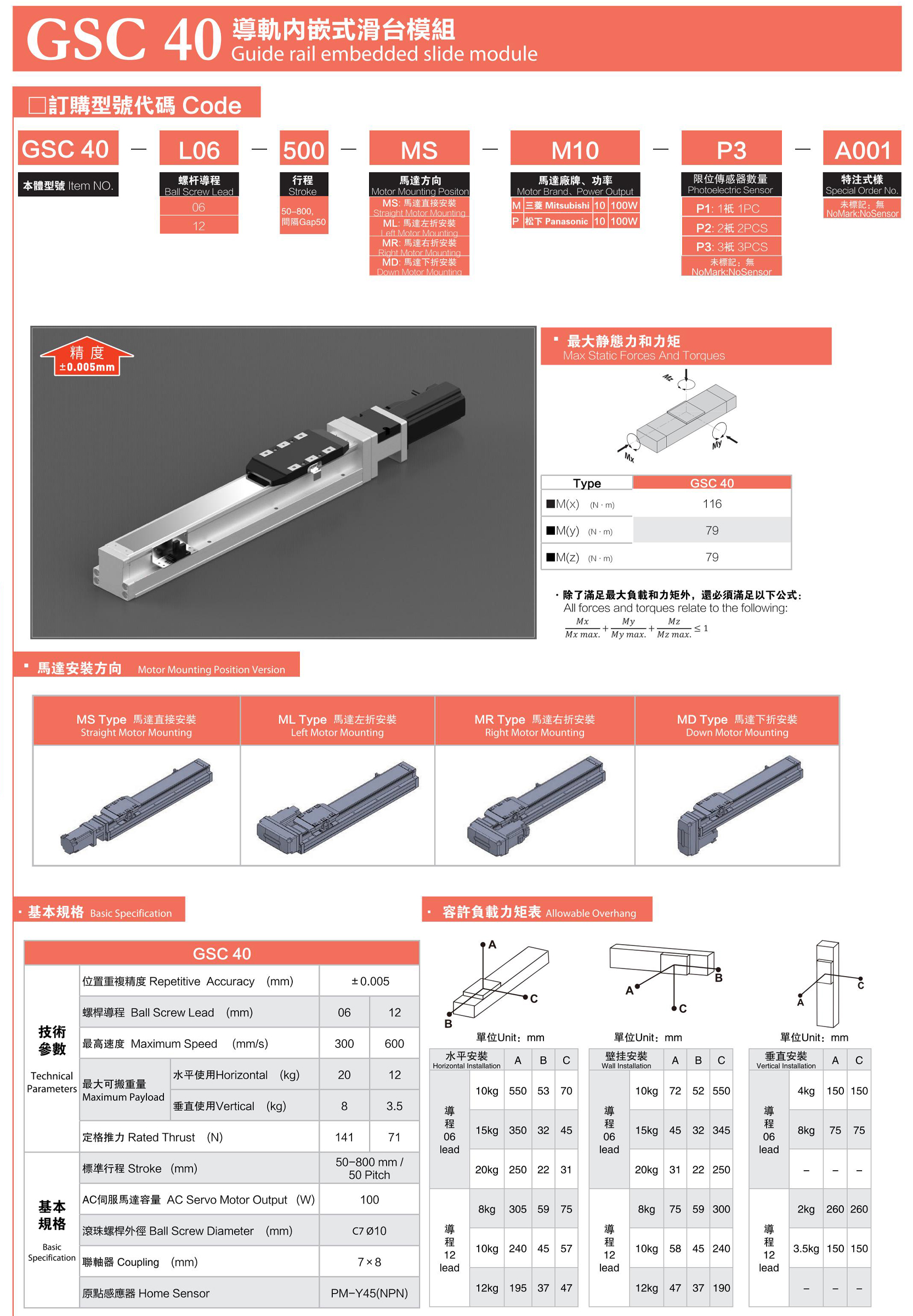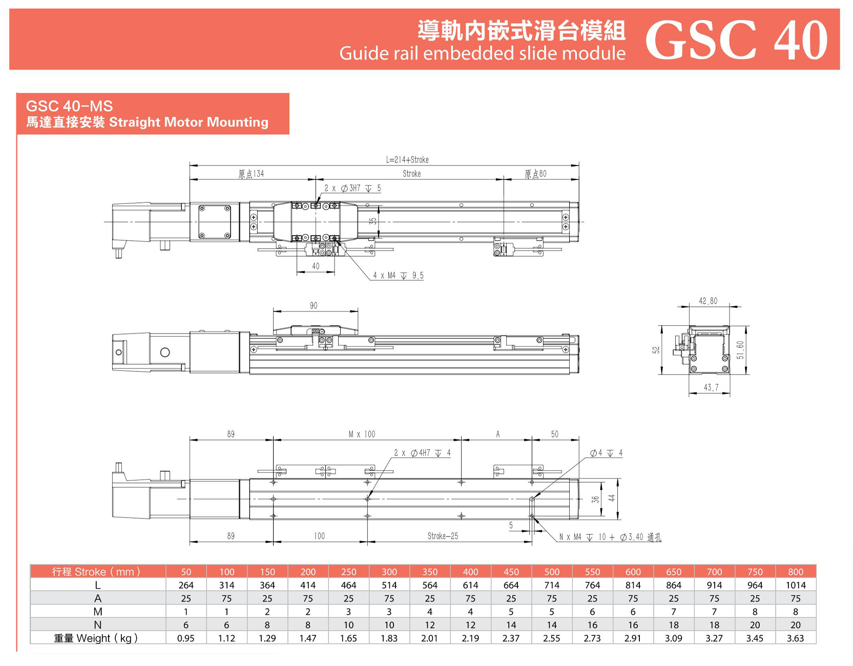 GSC40內(nèi)嵌式滑臺(tái)模組
